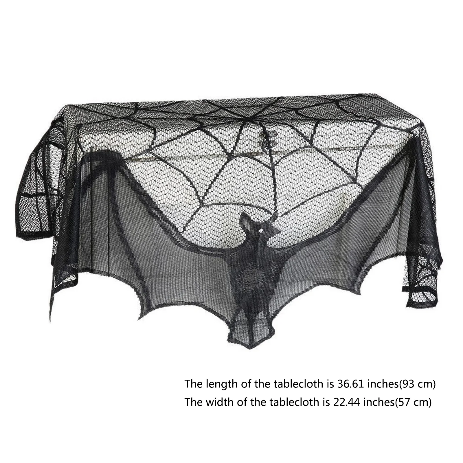 Material:Lace Color:Black Size:93x57cm Name:Halloween Spider Bat Fireplace Mantle Features: Can be lace curtains coffee curtains, fireplace cloth, tied with a ribbon becomes a lampshade (without ribbon); three ways of use; there are holes through which you can directly through the curtain rod, with a ribbon can be tied directly When the lampshade is used, it can be used for other purposes according to personal preference.
